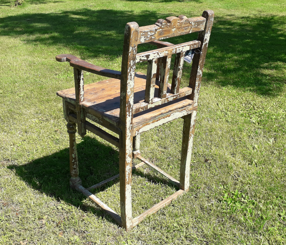 Alter Friseurstuhl aus Indien, vom Alter gezeichnete Patina und angenehme Haptik, originelles Einzelstück!