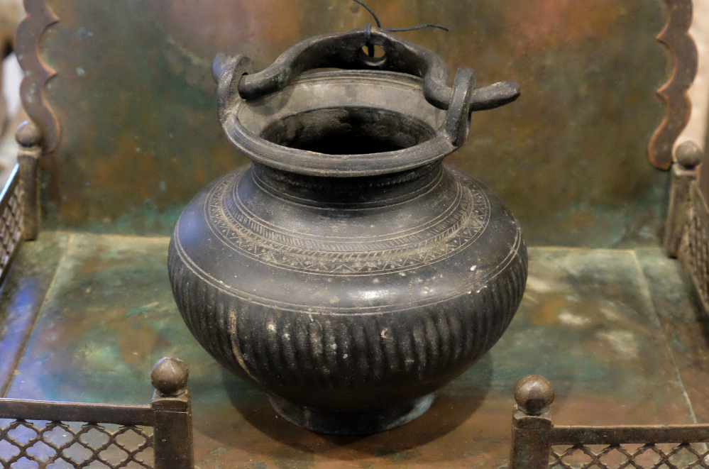 Antikes, massives Räuchergefäß aus Bronze, im Henkel ein Loch zum Aufhängen, Unikat aus Indien!