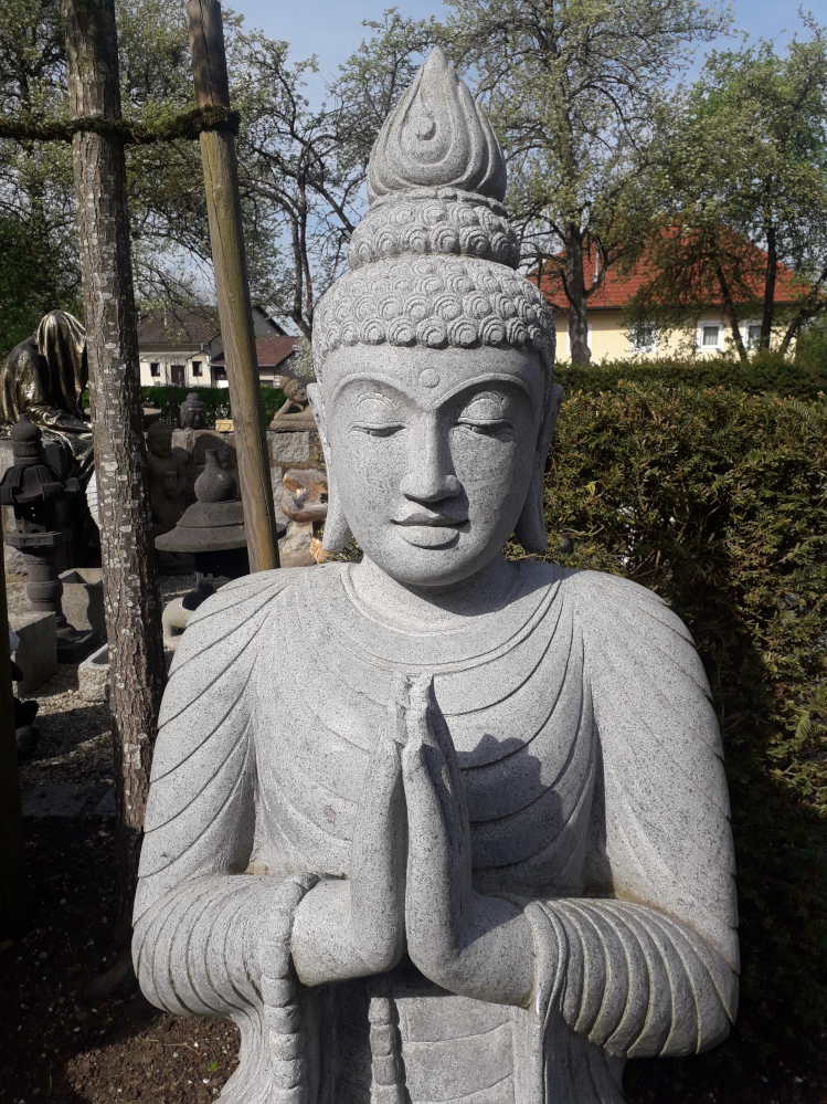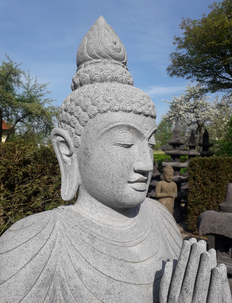 Grossartiger Buddha aus handgeschlagenem Flussstein, meisterliche Steinmetzkunst, frostsicheres Unikat aus Indonesien!