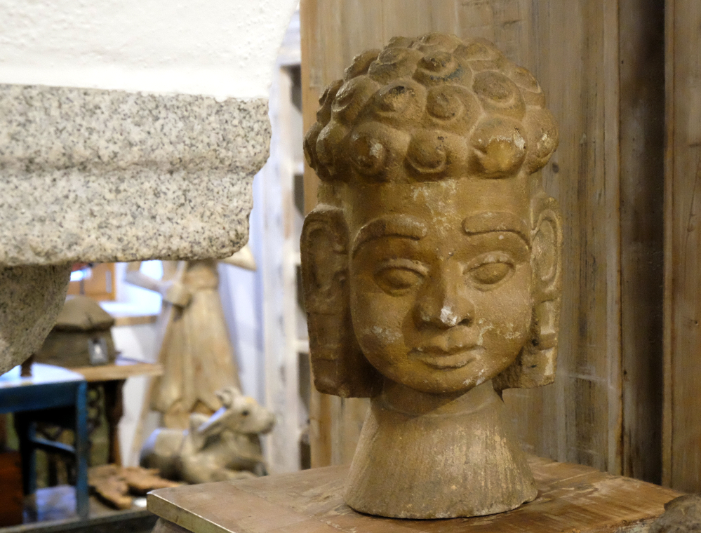 Antiker Buddhakopf aus Stein gehauen. Selten in dieser Darstellung. Unikat aus Indien!