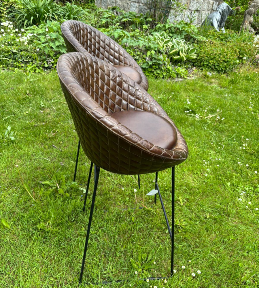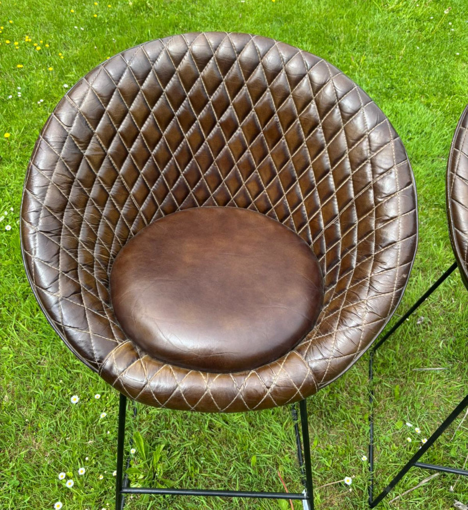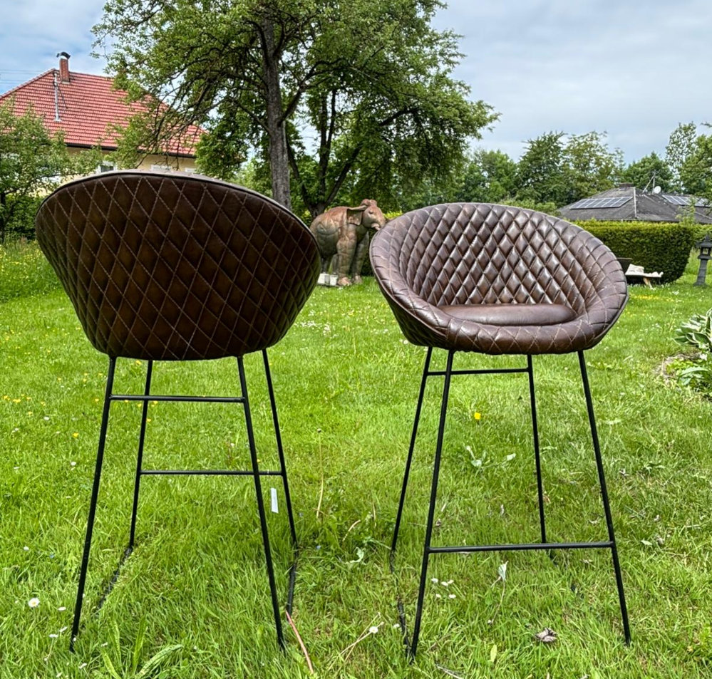 Barhocker zum Chillen: das Gestell aus Eisen, die Sitzschale und Sitzpolster mit wunderbar weichem und gut vernähtem Leder überzogen, so kann der gemütliche Teil des Tages beginnen!
