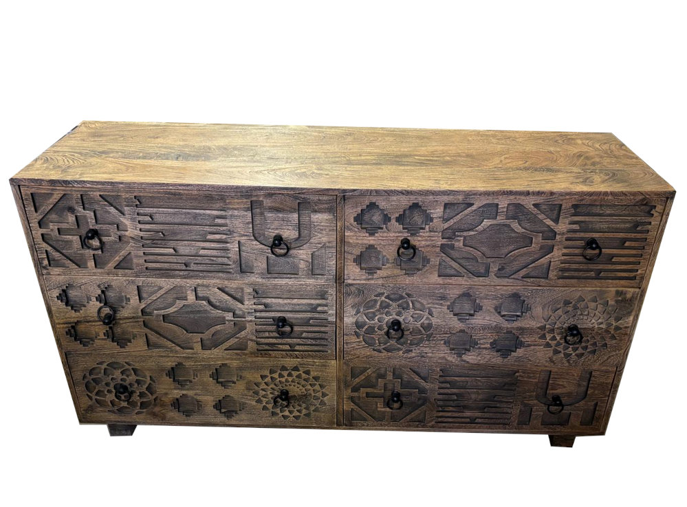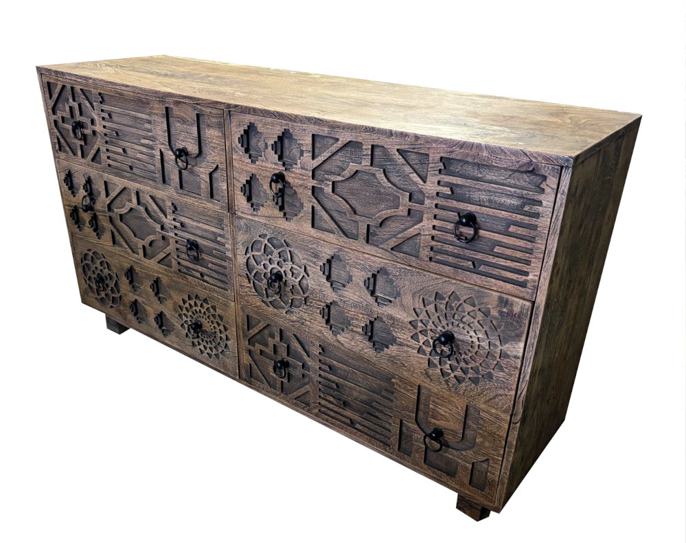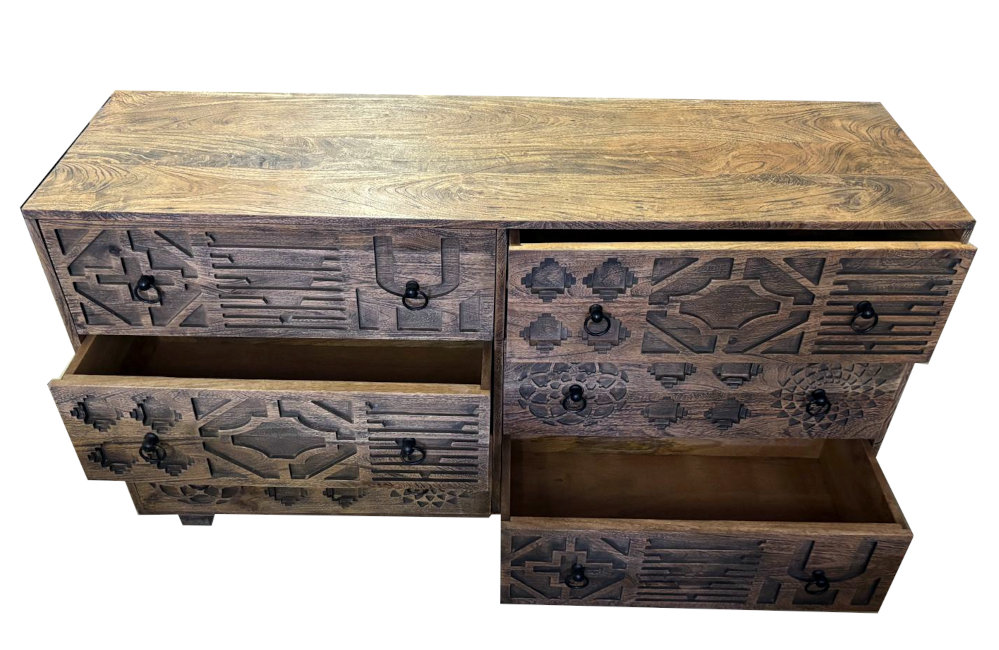 Neu eingetroffen: Tolles Sideboard mit sechs großen Schubladen, aufwendig handgeschnitzte Muster, dekoratives Unikat aus Indien!