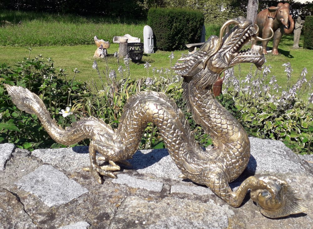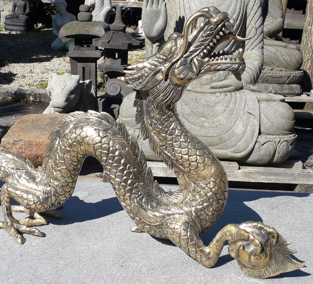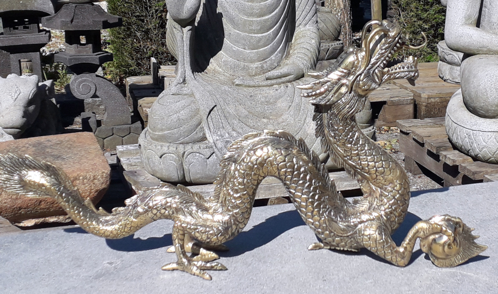 Großartiger und großer handgefertigter Drache aus Messing: der Drache steht für Glück, Erfolg und Wohlstand, sowie für Macht und Wohlwollen, perfekt für´s Daheim, Büro und Studio!