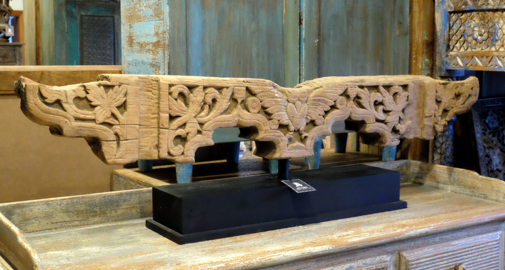 Antikes Original aus Burma: Reliefschnitzerei aus Teakholz, Ende des 19. / Anfang 20. Jhdts.,  inkl. Ständer, Unikat!