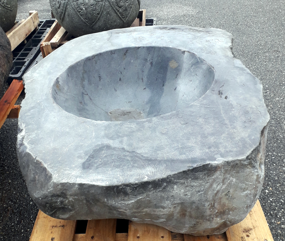 Eine etwas andere Feuerschale: frostsicher, aus massivem Stein handgehauen, mit Abflussloch versehen. Auch an kalten Tagen wird es an dieser Feuerstelle angenehm warm und kuschelig.