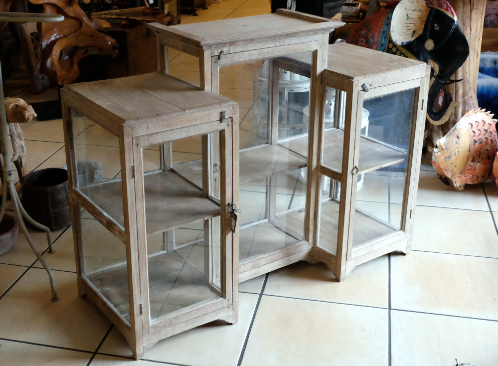Tolle Vitrine für Präsentationszwecke, da an allen Seiten verglast. Ideal für allerlei Sammlerstücke oder Handwerkskunst.