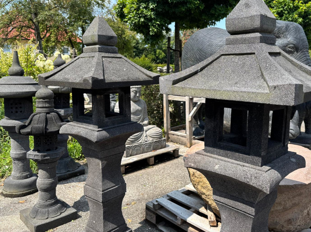 Großartige und große Pagode aus grauem Lavastein, gestaltet nach dem Vorbild der japanischen Geisterhäuser, frostsicher, drei Varianten zur Auswahl, Eyecatcher!