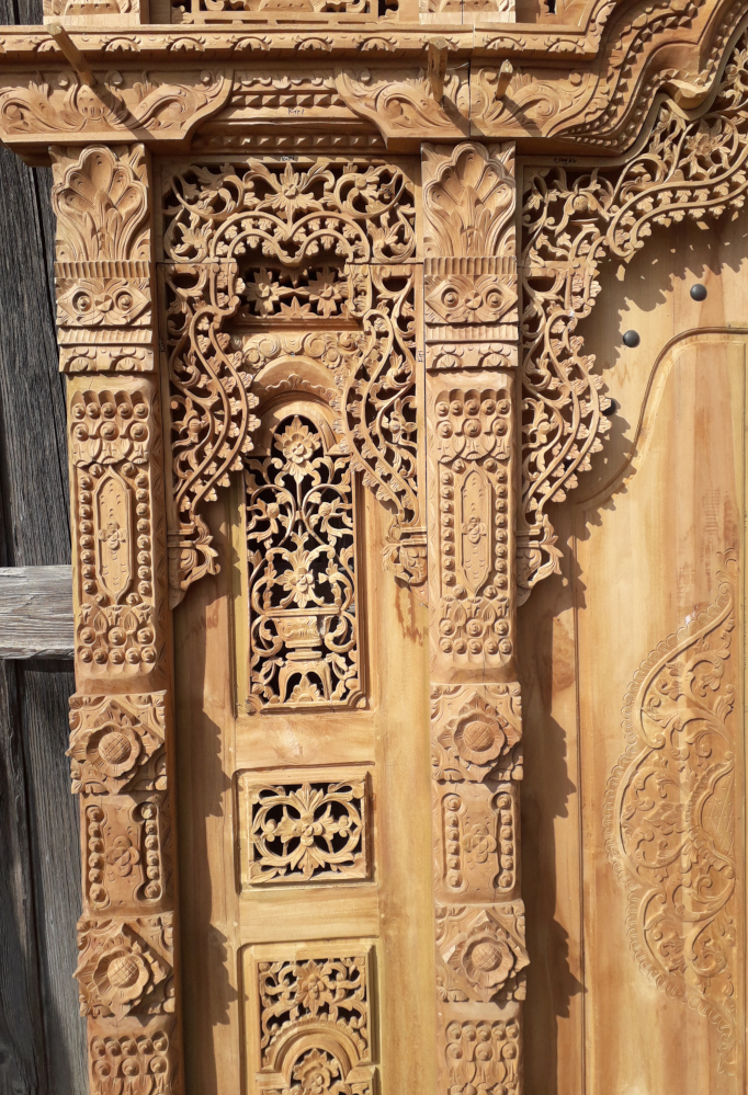 Großes verziertes Tor aus Teakholz