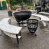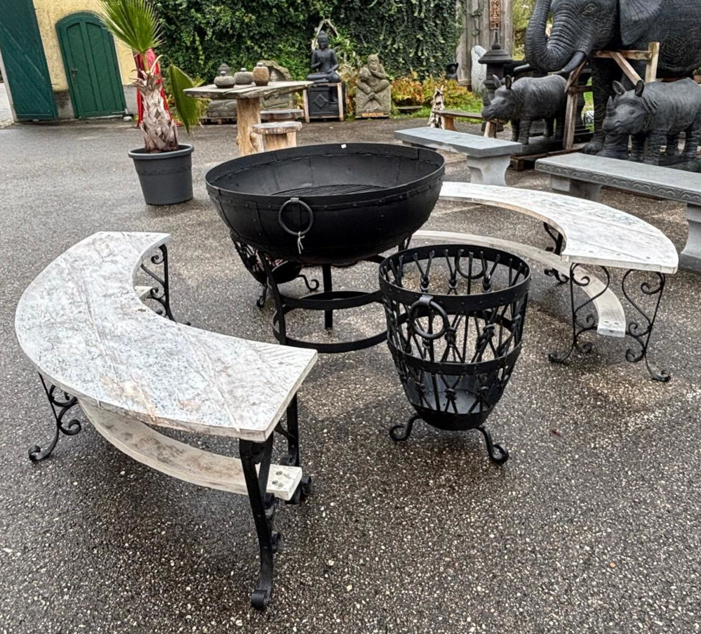 Halbrunde Bank aus Edelstahl und Holz, ideal z.B. rundum eine Feuerschale oder einem Baum, zwei Stück lagernd!