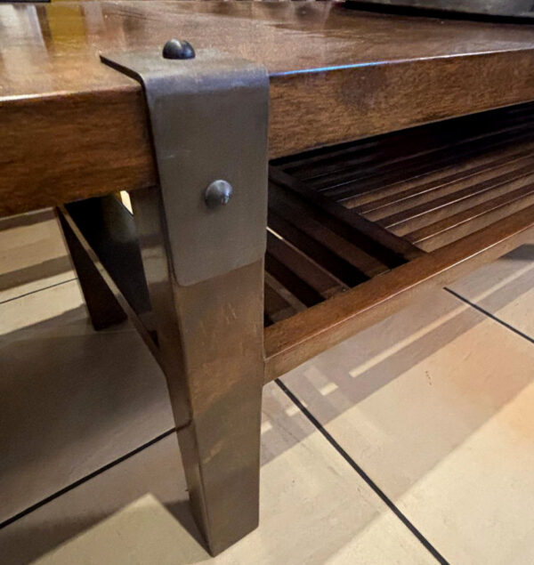 Original japanischer Tisch aus massivem poliertem Holz und Metall, zwei Ebenen, Unikat!
