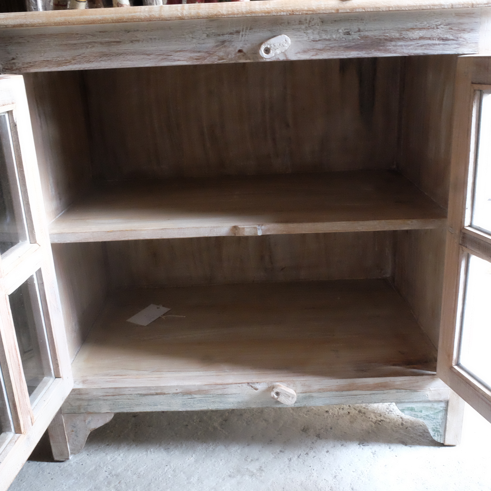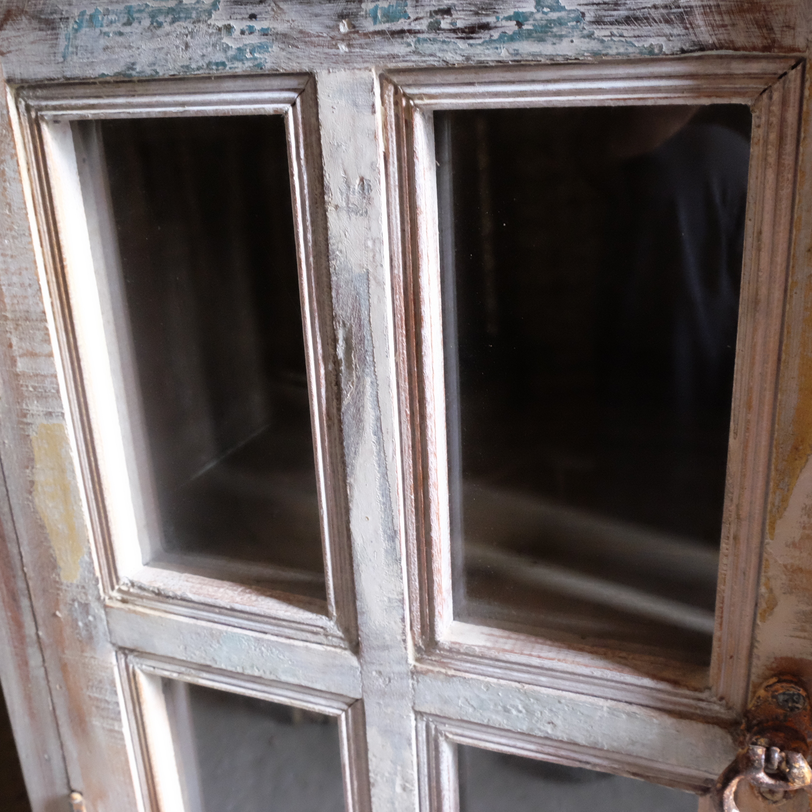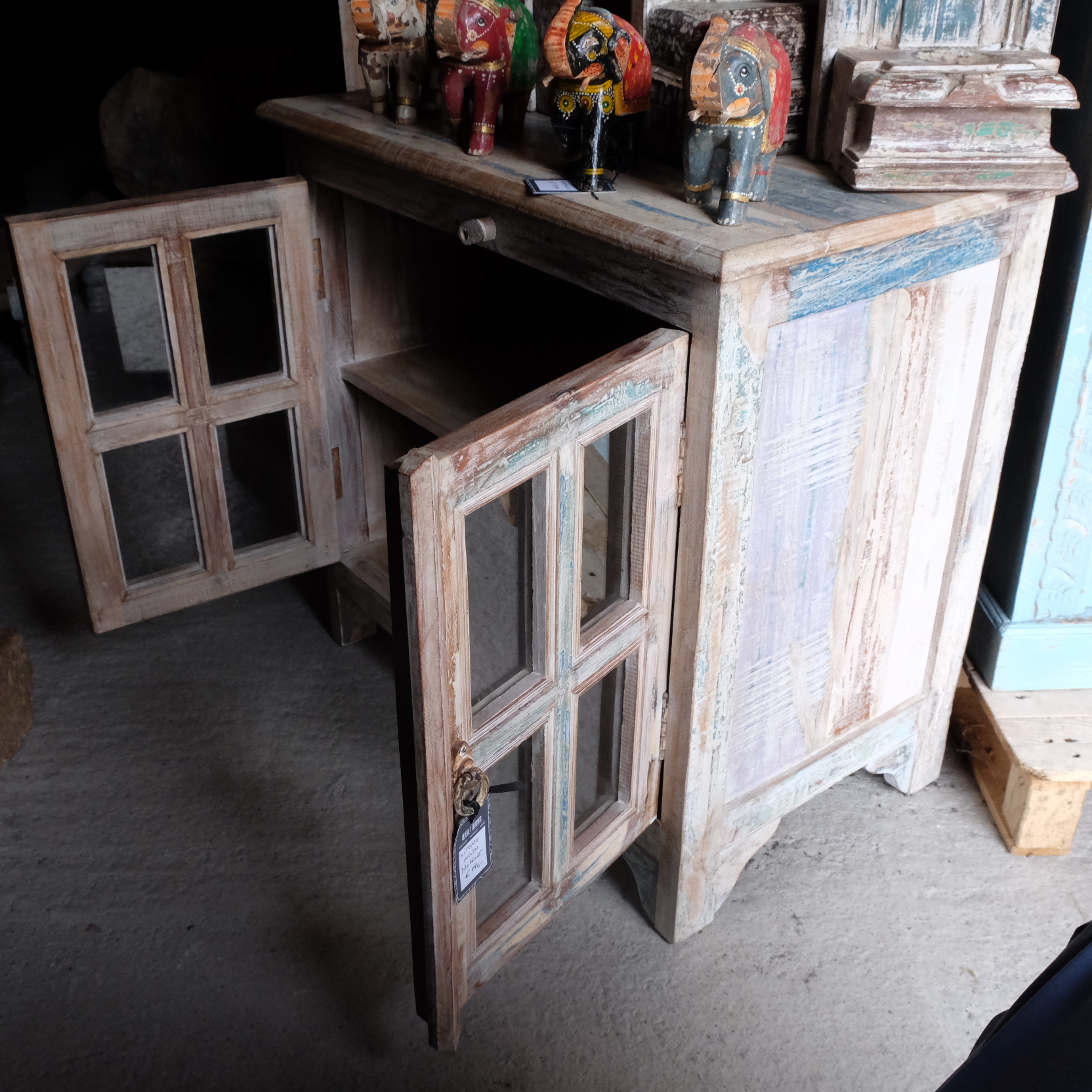 Ein kleiner Schrank mit Glastüren, praktisches Einzelstück aus Indien.