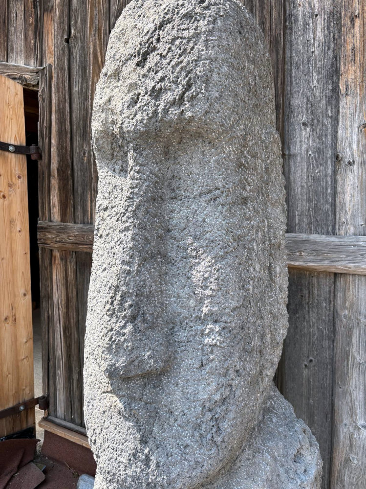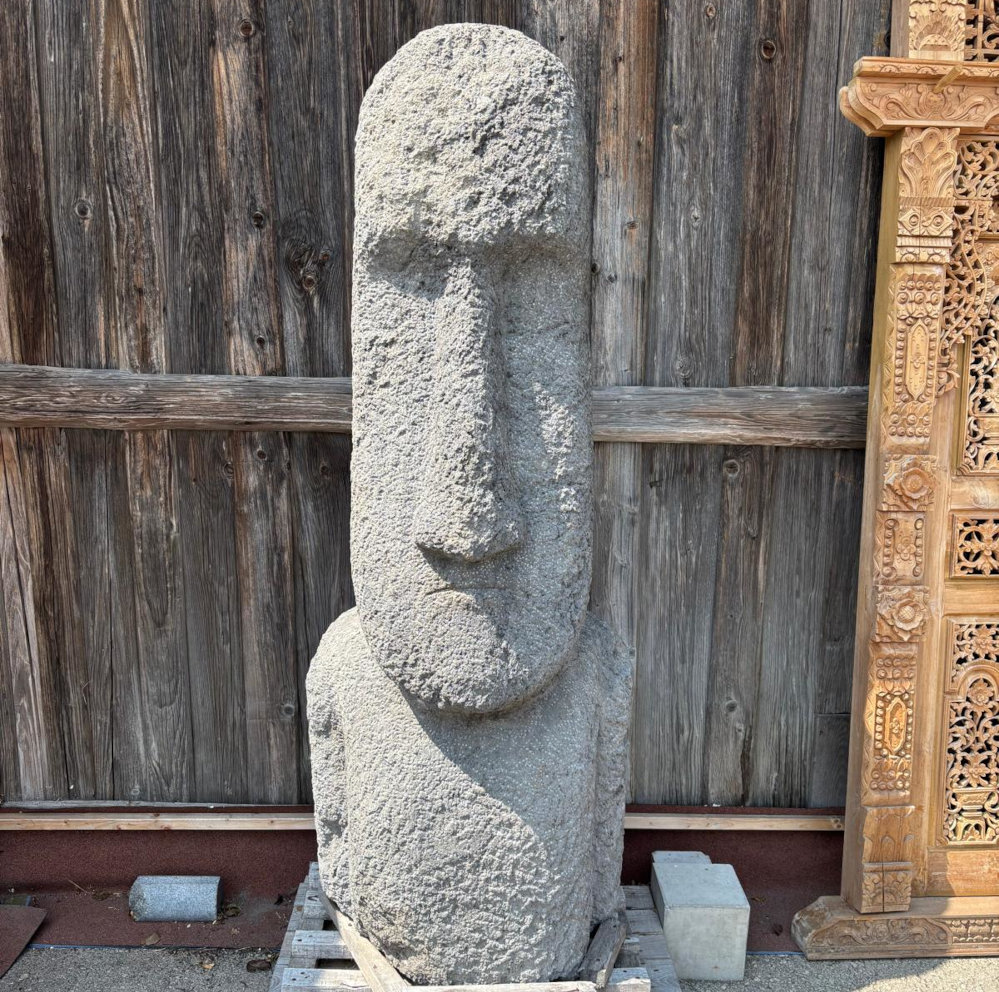 Moai aus massivem und frostsicherem Flussstein, 180 cm hoch, Eyecatcher in Aktion!