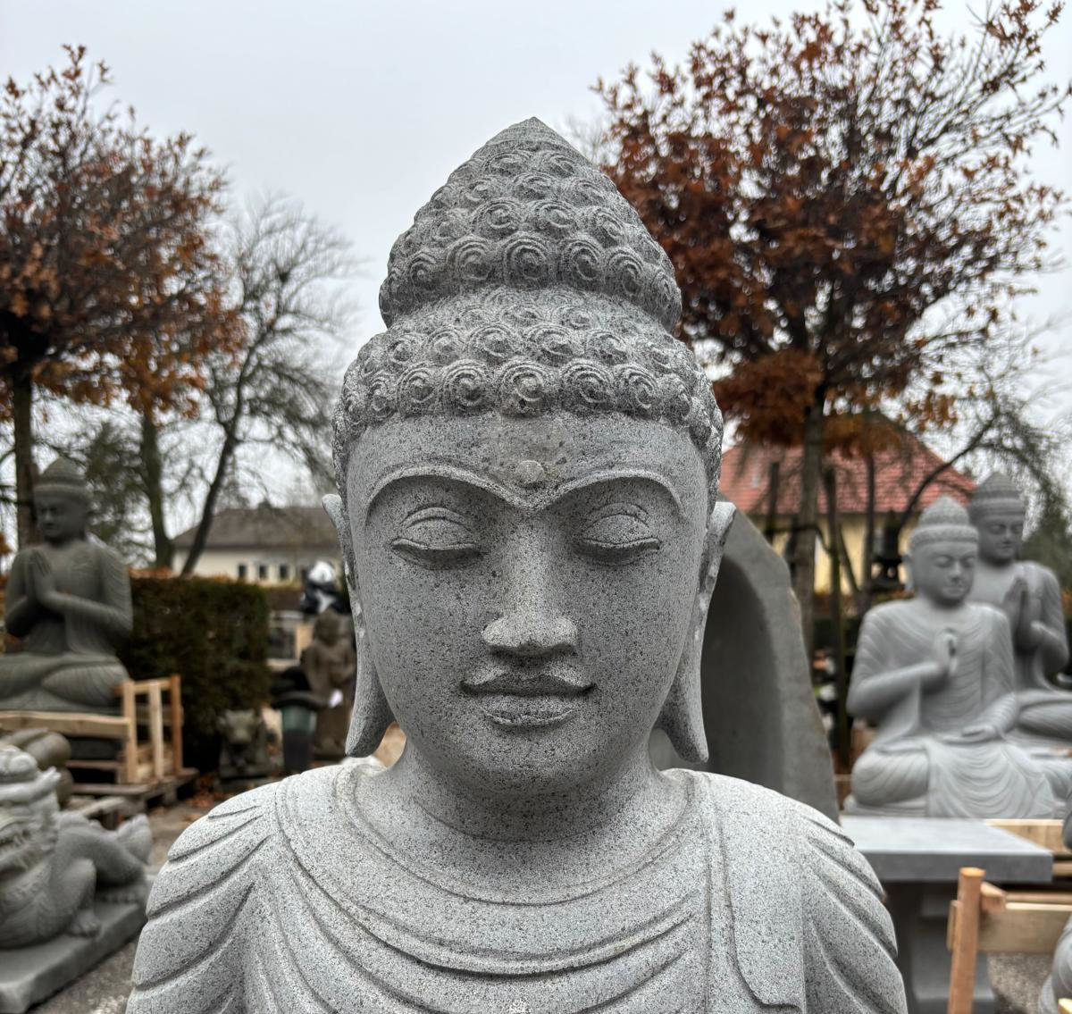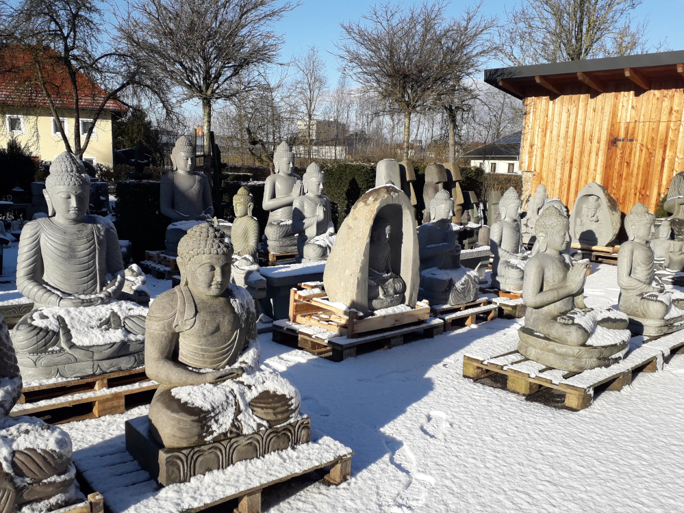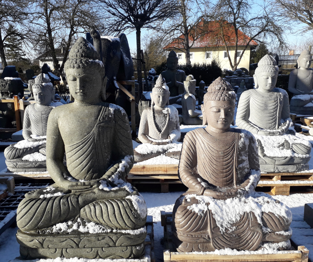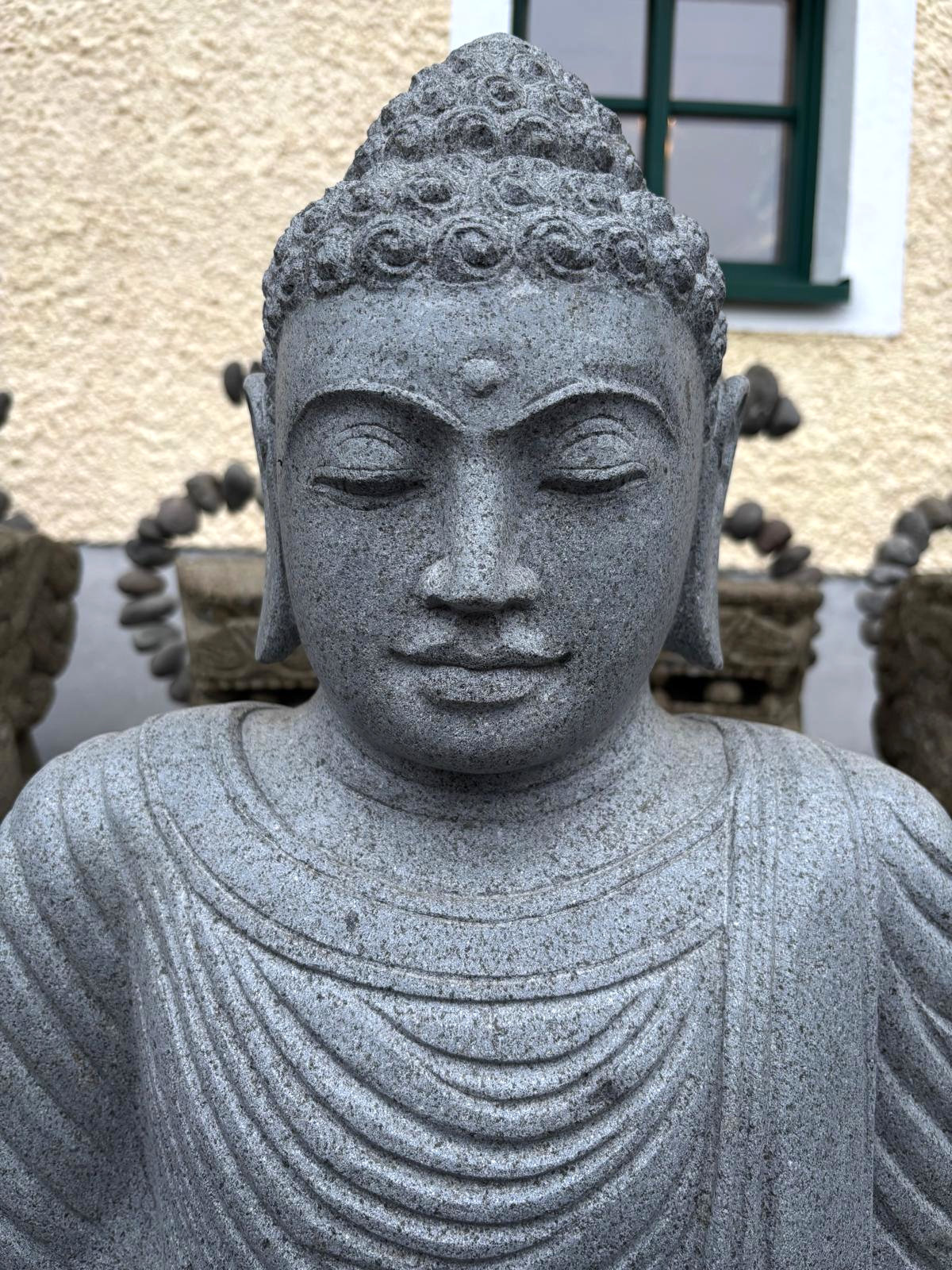 Beeindruckend schöne und perfekt handgehauene Buddhas aus massivem Flussstein und Lavastein