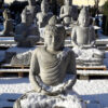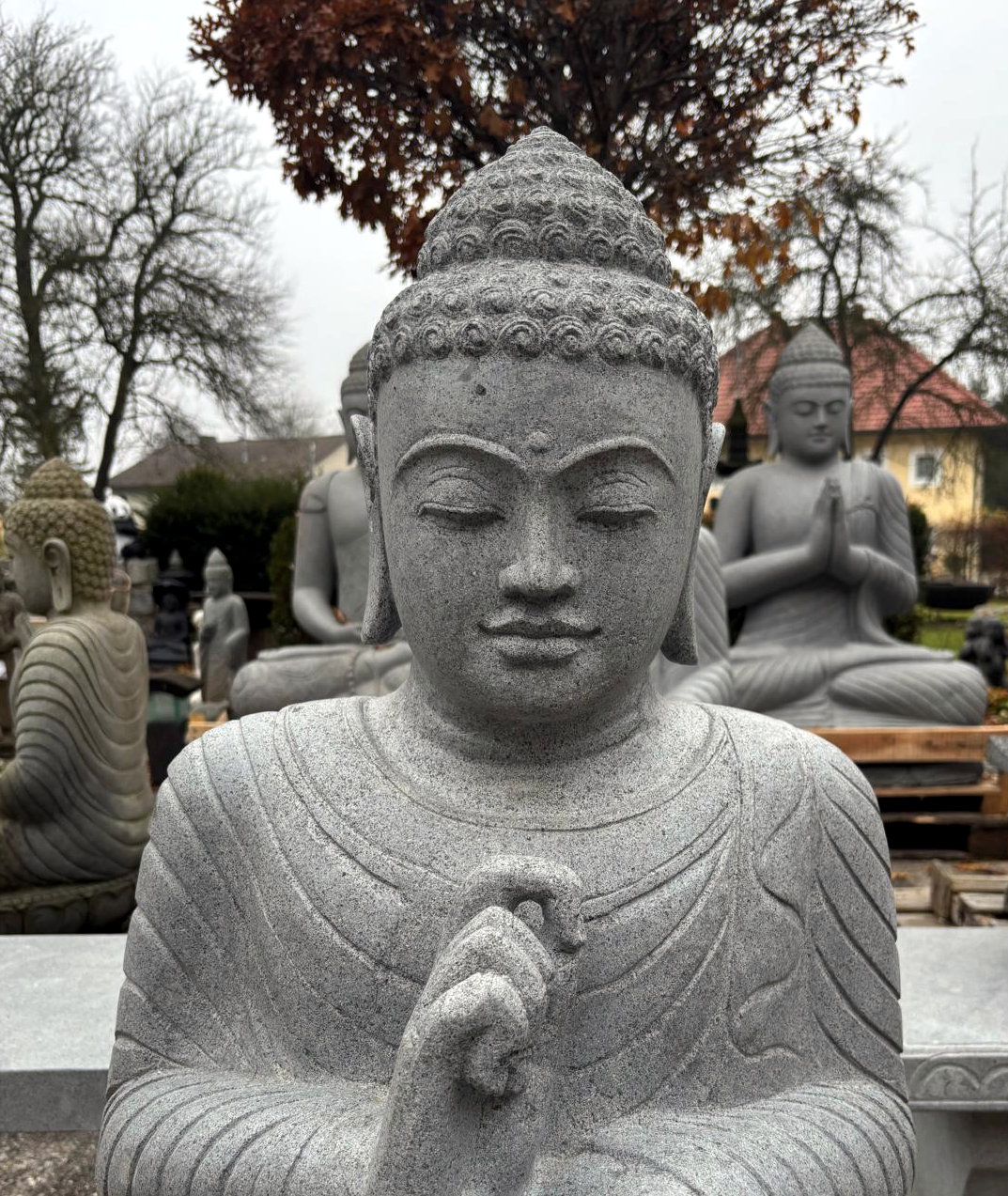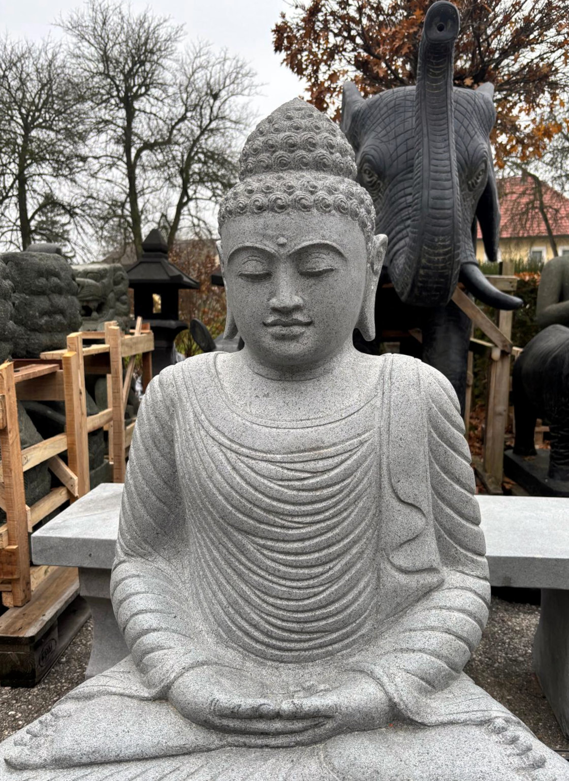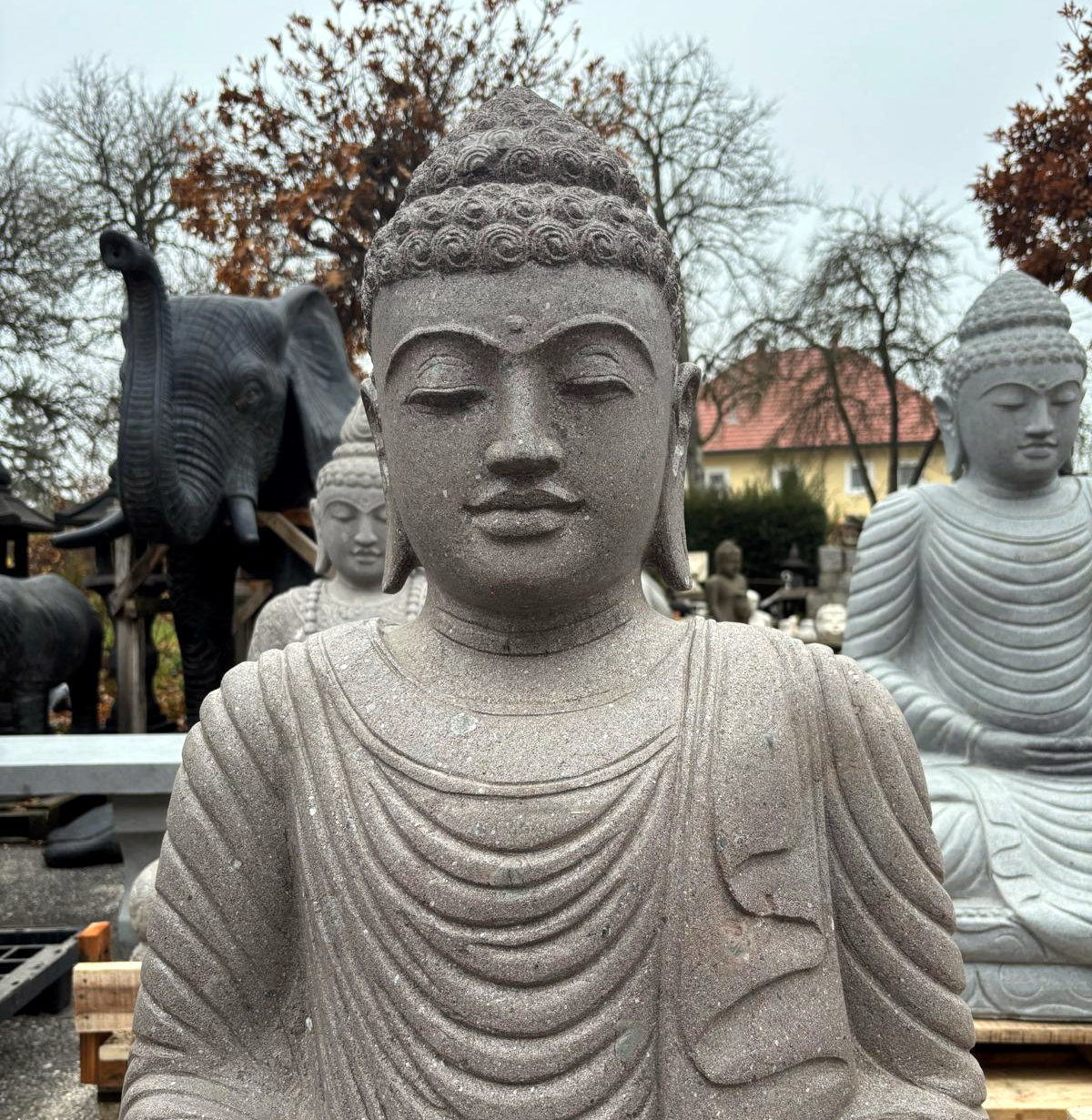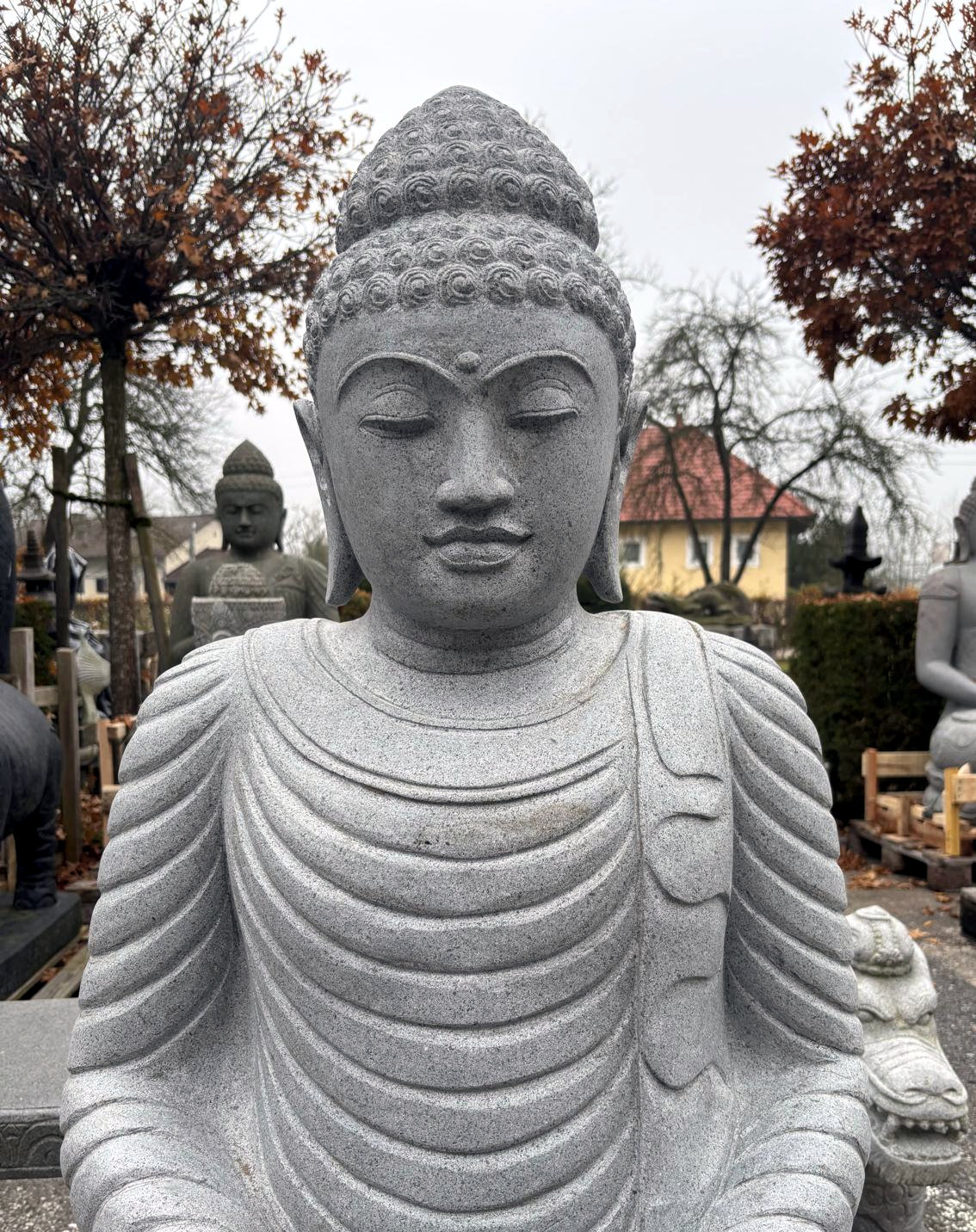Beeindruckend schöne und perfekt handgehauene Buddhas aus massivem Flussstein und Lavastein