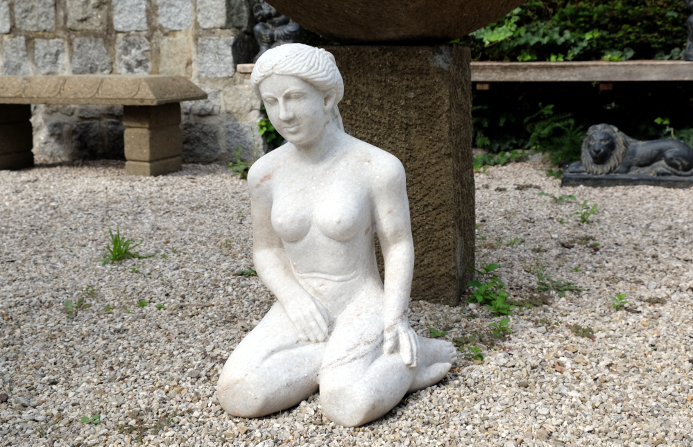 Eine Nymphe aus massivem Marmor. Die Figur scheint direkt der griechischen Mythologie entsprungen, Unikat aus Indien.