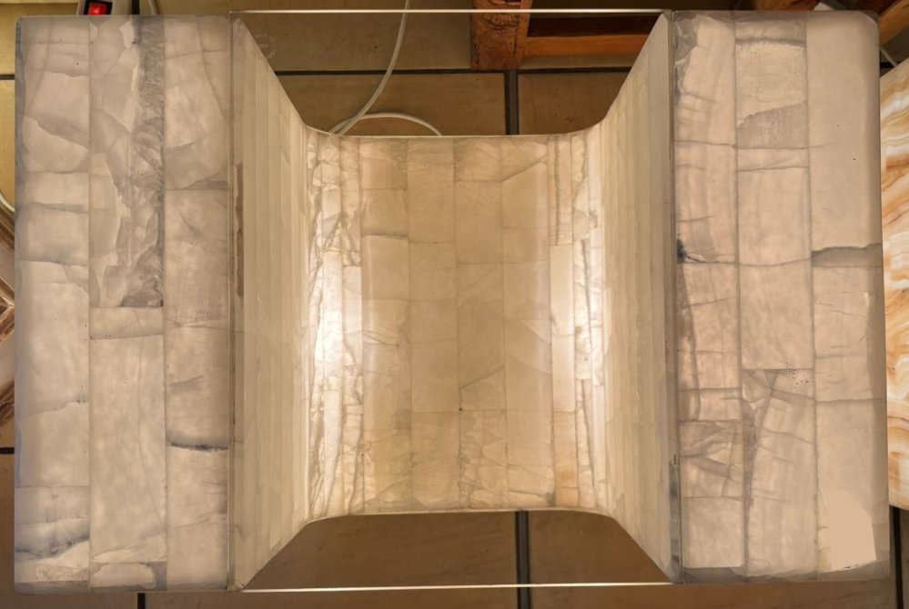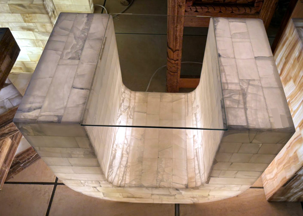 Wunderbarer Tisch aus einzelnen Onyx-Plättchen, U-Form mit eingelegter Glasplatte, durch die Lichtquelle innen ein traumhafter Eyecatcher, Unikat aus Südamerika!