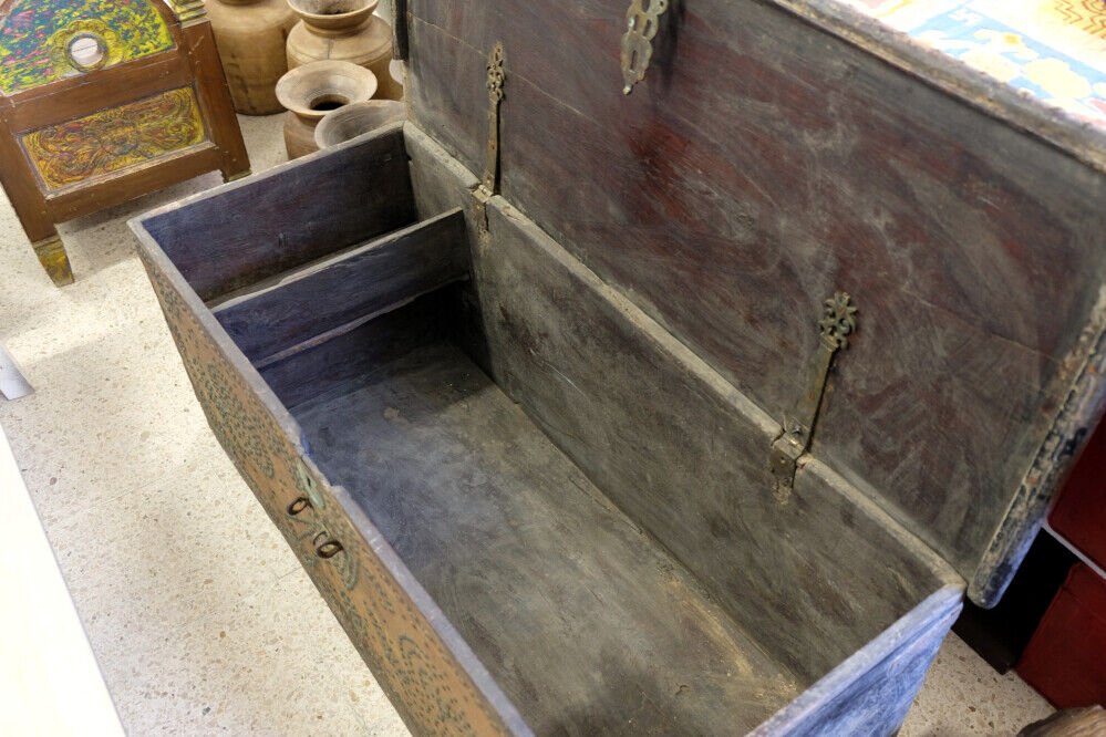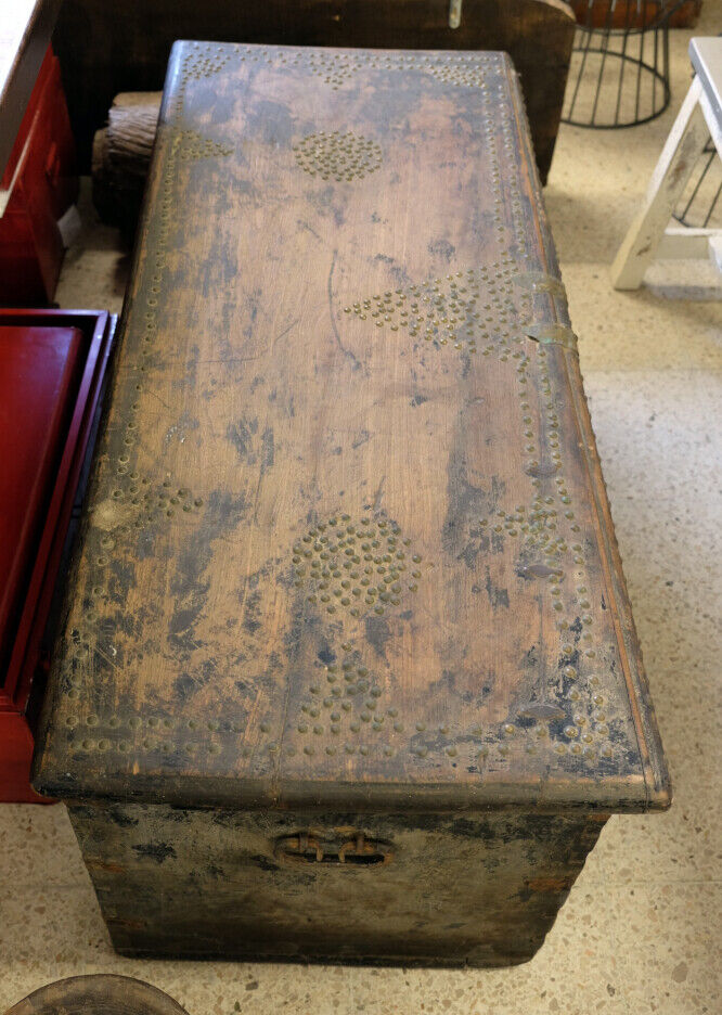 Alte große Truhe aus Persien, sehr gut erhalten, wunderbar mit Kupfernägel beschlagen, aufklappbar, seltenes Unikat!
