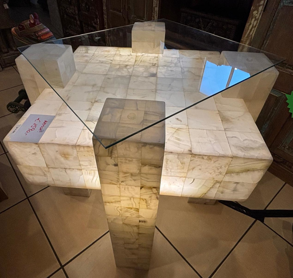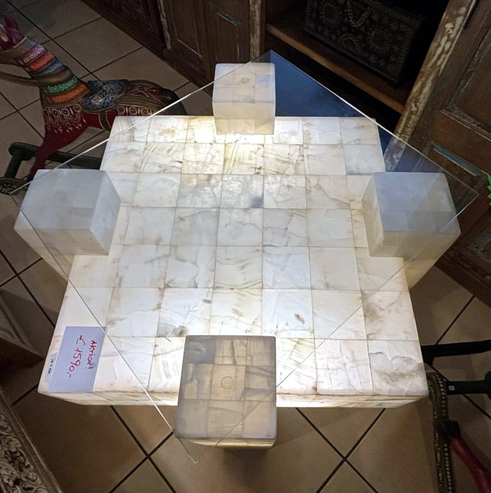 Aus feinen dünnen Onyx-Plättchen gefertigter Tisch, perfekt zum Präsentieren und als Verkaufstisch.