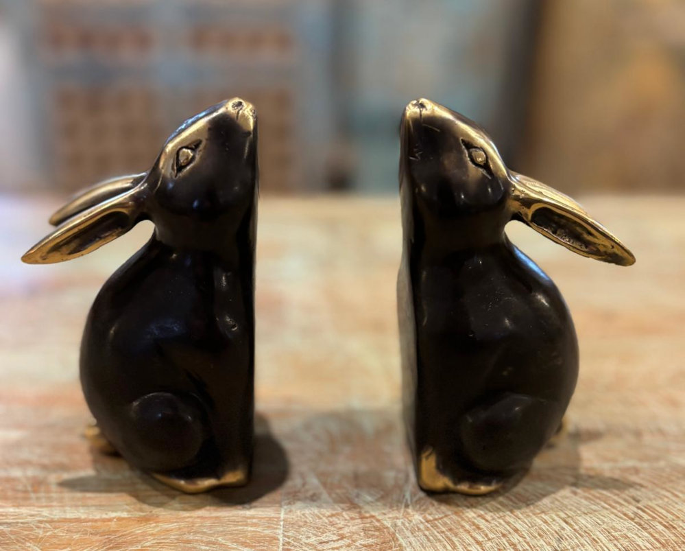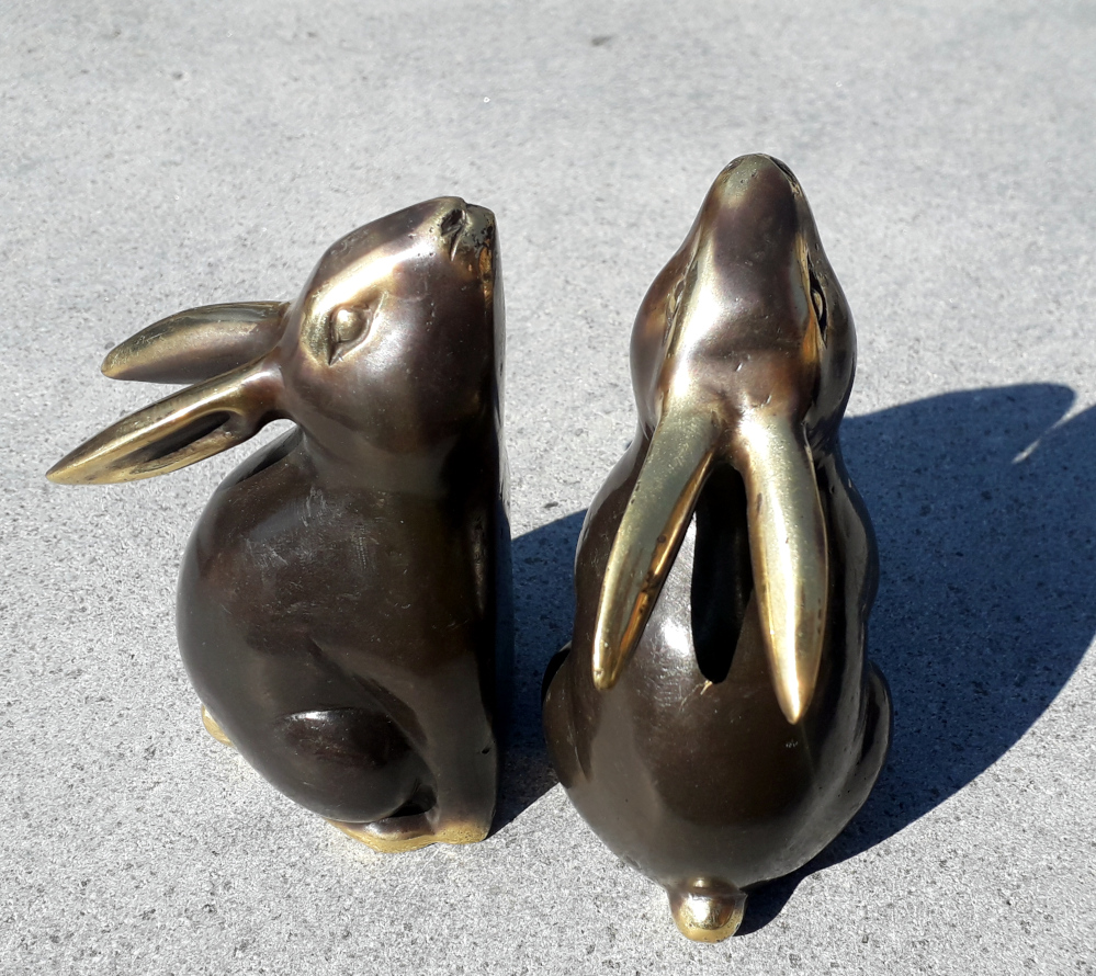 Zwei Hasen als Buchstützen, massive Bronze, entzückende Geschenkidee, Preis pro Stück!