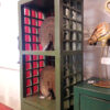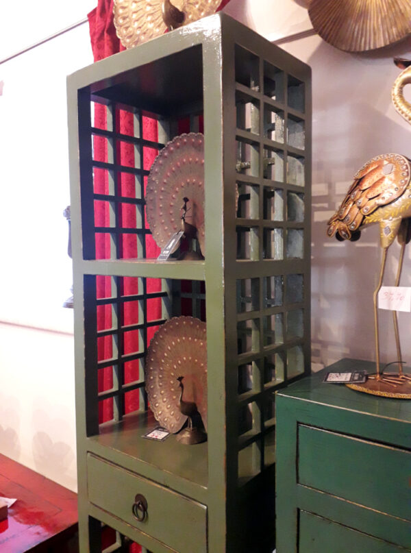 Hohes schmales schlankes Regal aus China, unten zwei Türen, in der Mitte eine praktische Schublade, Vollholz lackiert, Einzelstück!