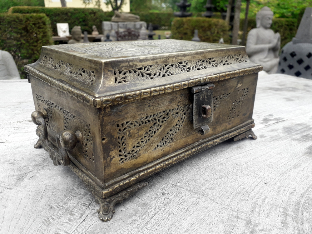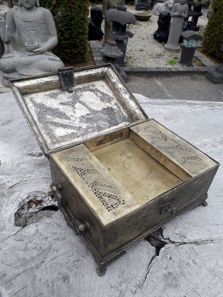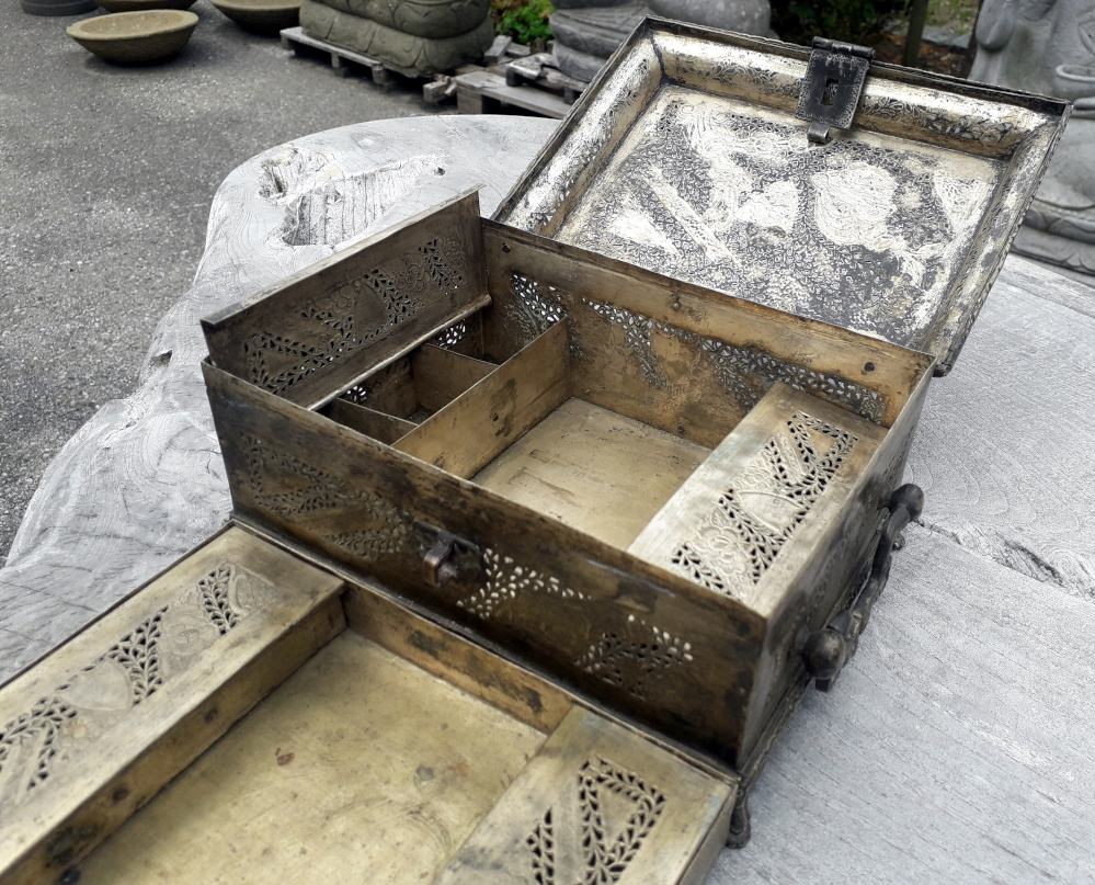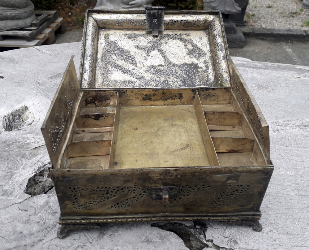 Einzigartig schöne, verschachtelte Schmuckschatulle aus Indien, Messing versilbert, handgearbeitet und -geschmiedet, aufwendig verziert, altes Unikat!