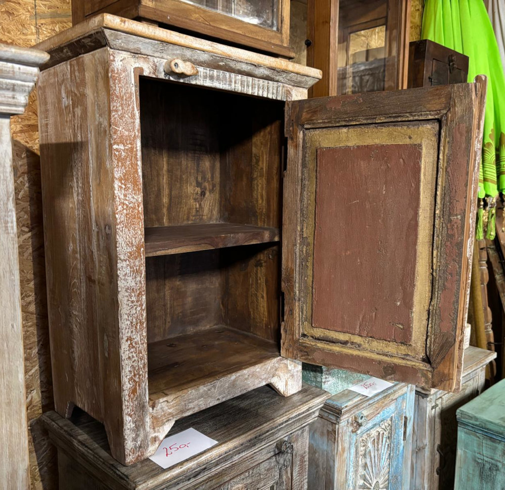 Handgearbeitetes Kästchen aus Indien, noch mit der alten Patina versehen, in der Tür ein harmonisches Sonnenmuster, innen zwei Ebenen, Einzelstück!