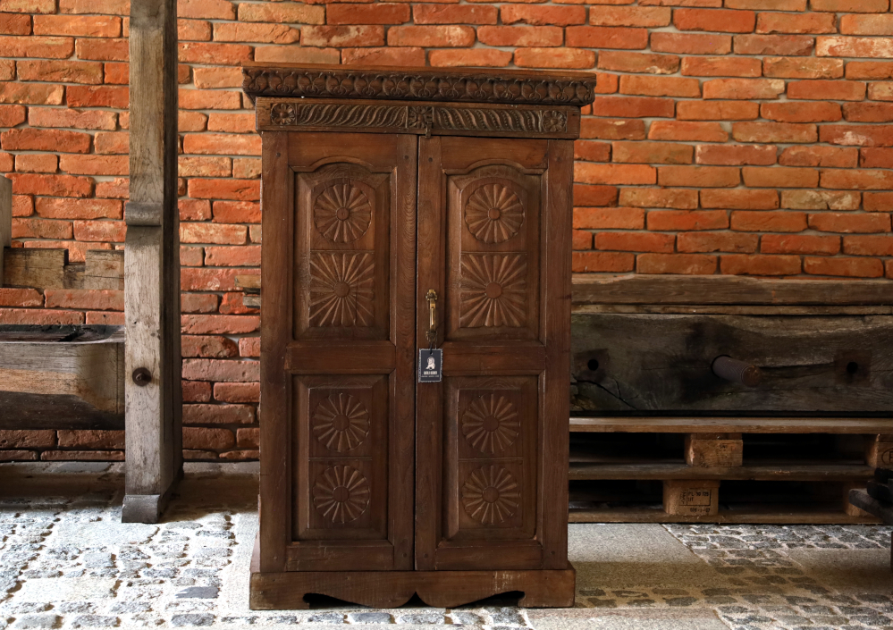 Schrank mit Sonnen-Schnitzereien