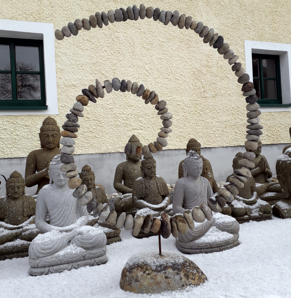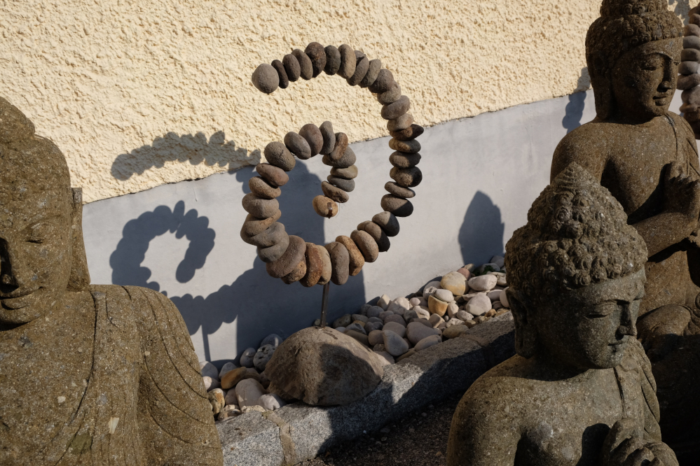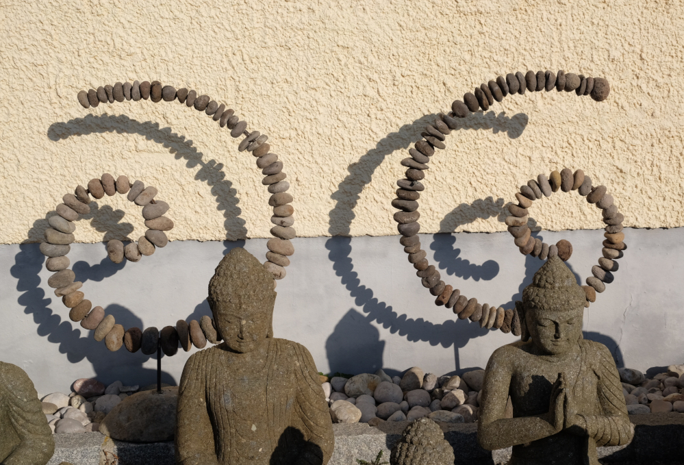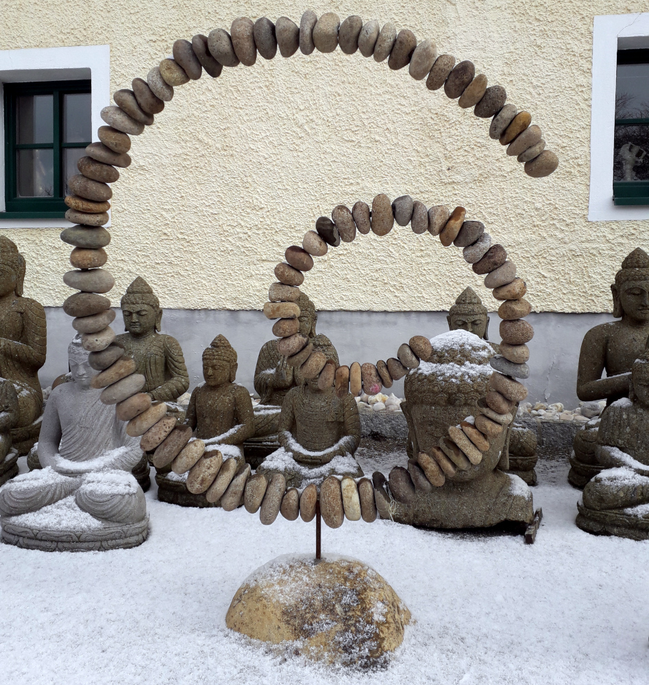 Steinmandl einmal anders: aufgereihte Steine in Spiralform, aufwändig handgefertigte Gartendeko, frostsicher!