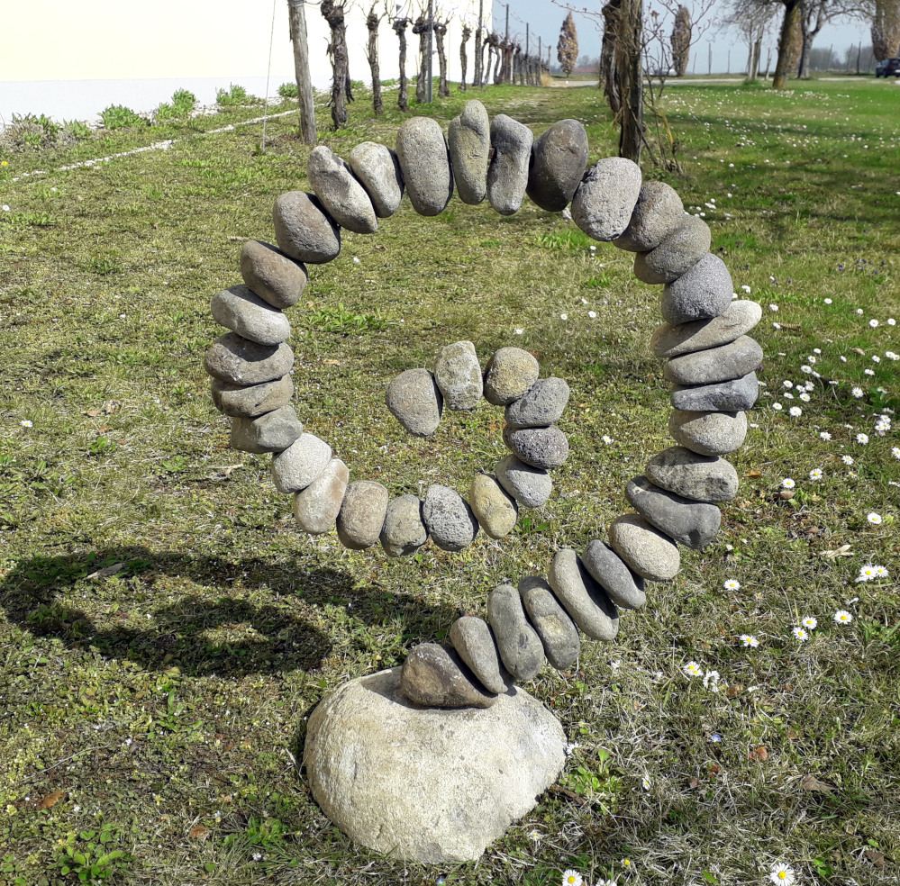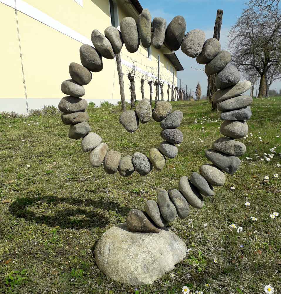 Coole Gartendekoration: auf dem Kopf stehende Steinspirale „9“, frostsicher!