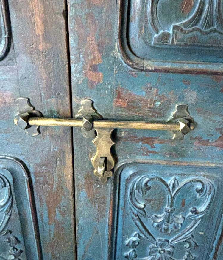 Tolle alte Tür oder besser gesagt: aussergewöhnliches Portal aus der indischen Region des Himalaya, die Doppeltüren gehen nach innen auf, Riegelschloss, perfektes herrlich geschnitztes und verziertes Unikat!
