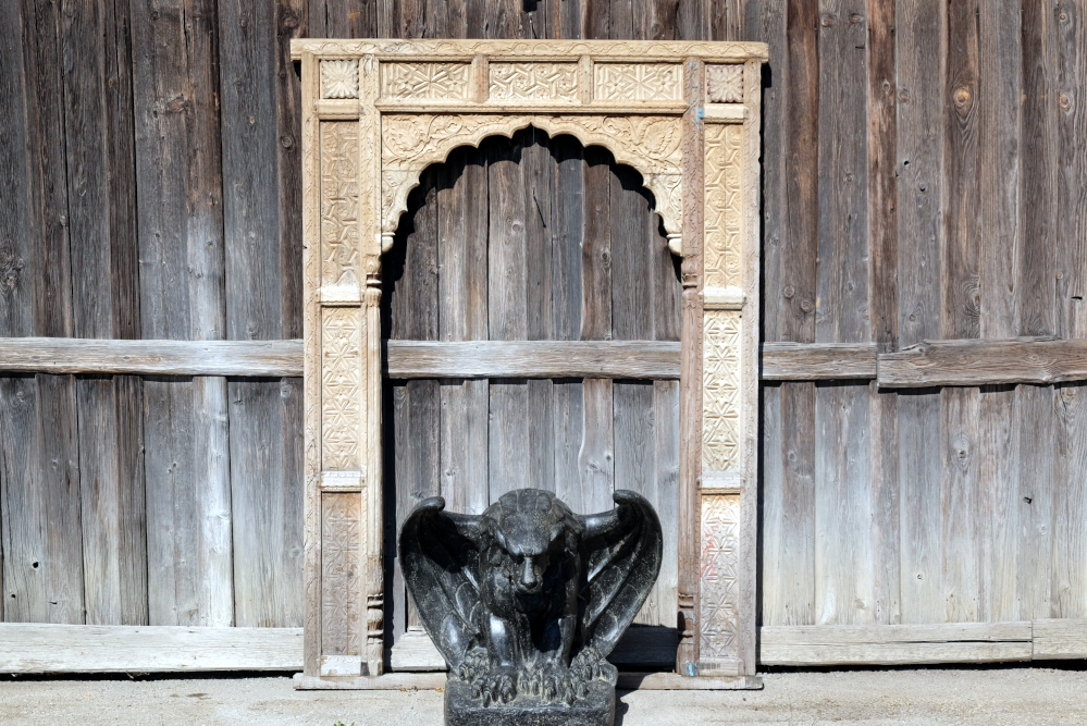 Toller alter Torbogen aus massiven Holz. Viele handgeschnitzte Motive zieren diesen Blickfang. Ein Unikat aus Indien.