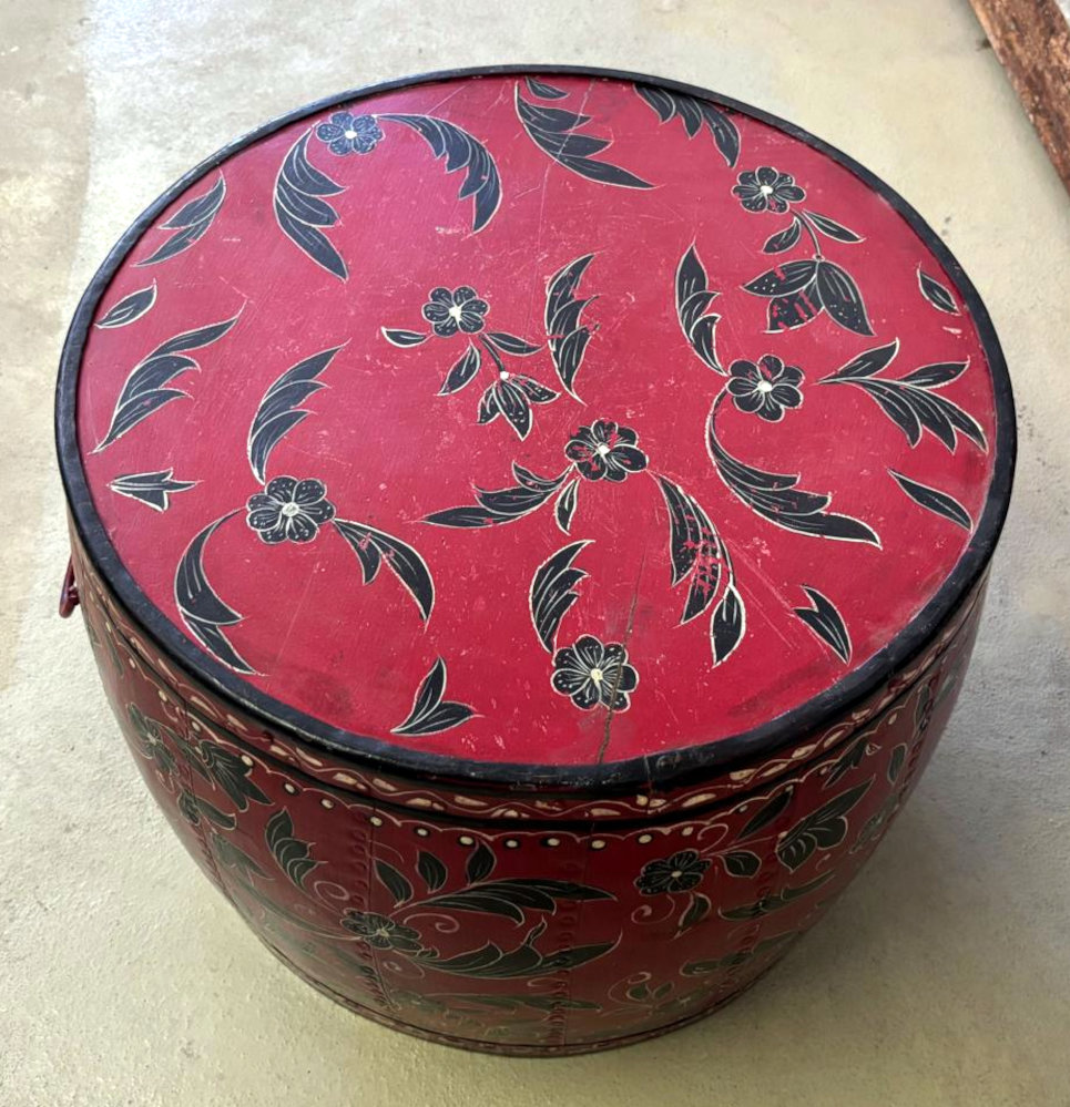 Couchtisch handmade aus einer alten Trommel, harmonisch bemalt, mit Griffen auf den Seiten, Einzelstück aus Indien!