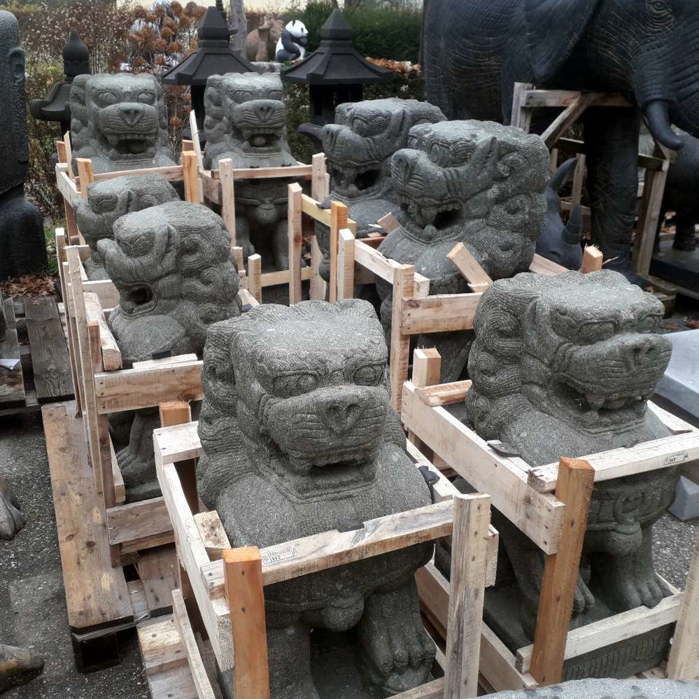 Wächterlöwen, auch bekannt als Fu-Löwen oder Shishi sind seit alter Zeit mächtige Schutzfiguren. Sie werden typischerweise paarweise an Eingängen von Tempeln, Palästen und Häusern platziert, um Unheil abzuwehren und Glück und Wohlstand zu bringen.